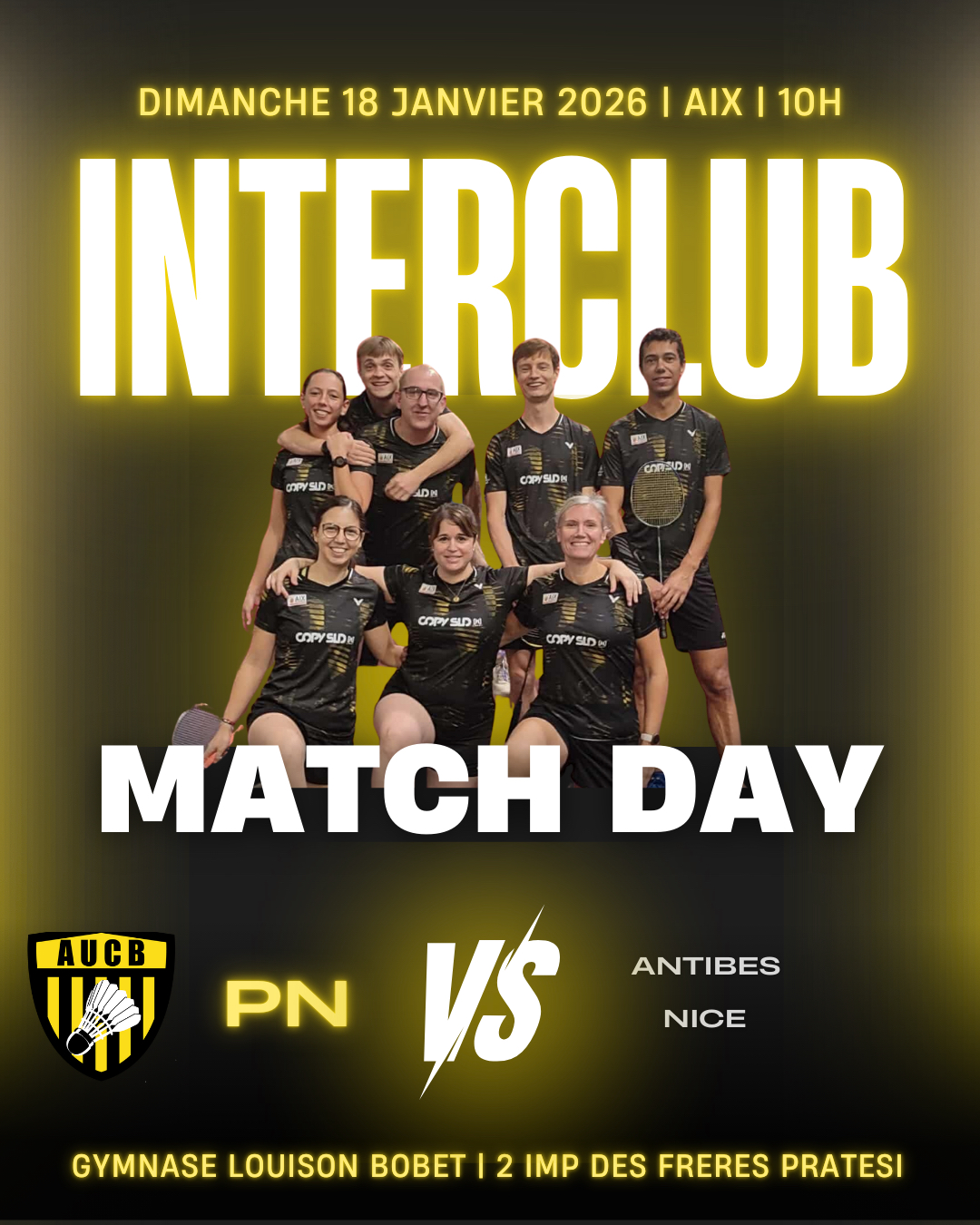🐝 Programme des interclubs D1 : AUC Badminton 🆚 Badminton Club Tretsois 📍 Lieu : Gymnase... |